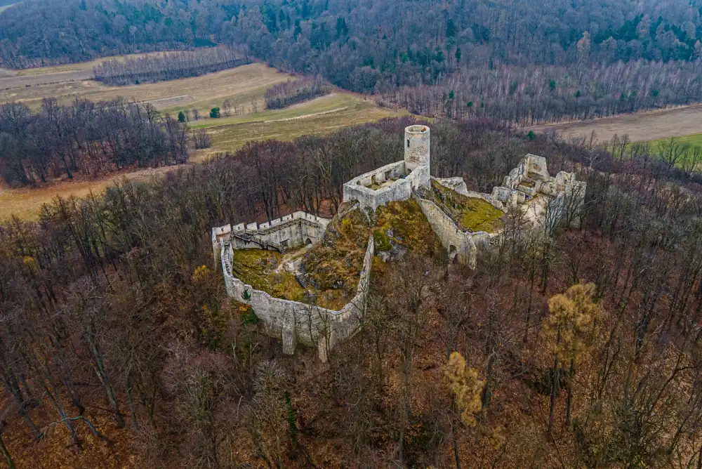 Ruiny zamku położone bardziej na uboczu, do których prowadzi przyjemne dojście przez las i wapienne wzniesienia. Na miejscu widać zachowane odcinki murów i relikty zabudowy, które pozwalają odczytać przebieg dawnych obwarowań. Ponadto ruch turystyczny jest tu zwykle mniejszy niż przy najbardziej znanych warowniach, więc to dobry wybór na spokojniejszą wycieczkę na terenie Parku Krajobrazowego Orlich Gniazd.