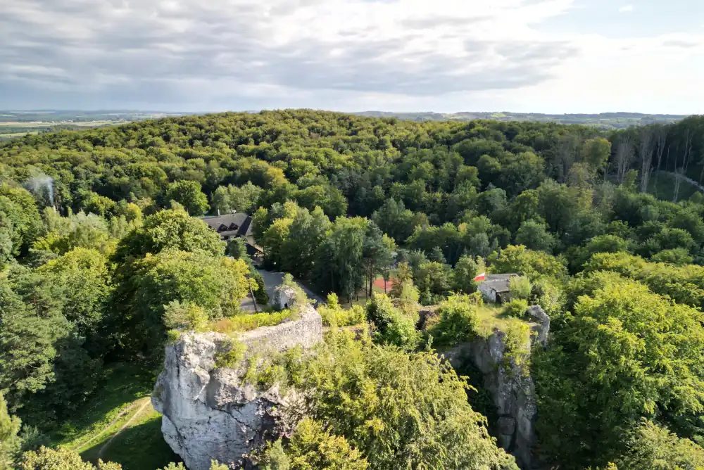 Warto mieć na uwadze także to, że na Jurze wiele ścieżek prowadzi po skalnych fragmentach i nierównej nawierzchni. Po deszczu wapienne podłoże bywa śliskie, a na otwartych grzbietach wiatr potrafi obniżyć odczuwalną temperaturę. Warto więc zostawić zapas czasu na spokojne podejścia, zwłaszcza gdy celem są punkty widokowe nad obniżeniami pomiędzy wapiennymi wzgórzami.