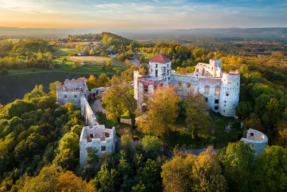 Tak, choć forma zwiedzania różni się w zależności od obiektu. Na szlaku znajdują się zarówno odrestaurowane zamki (np. Bobolice czy Pieskowa Skała), jak i malownicze ruiny. Niektóre obiekty, jak Mirów, ogląda się głównie z zewnątrz. Warto pamiętać, że część zamków posiada wyznaczone trasy turystyczne i konkretne godziny wejść, które mogą ulec zmianie poza sezonem.