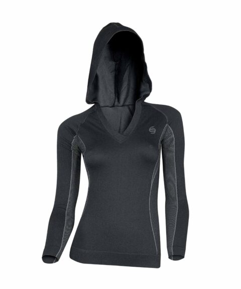 Bluza została wykonana w technologii bezszwowej (seamless), co znacząco zwiększa komfort użytkowania i eliminuje ryzyko otarć. Zaawansowana dwuwarstwowa dzianina łączy w sobie włókna o wysokiej elastyczności i wytrzymałości, zapewniając doskonałą oddychalność i optymalne odprowadzanie wilgoci. Materiał szybko schnie, a dzięki technologii termoaktywnej utrzymuje odpowiednią temperaturę ciała, nawet podczas intensywnego wysiłku.