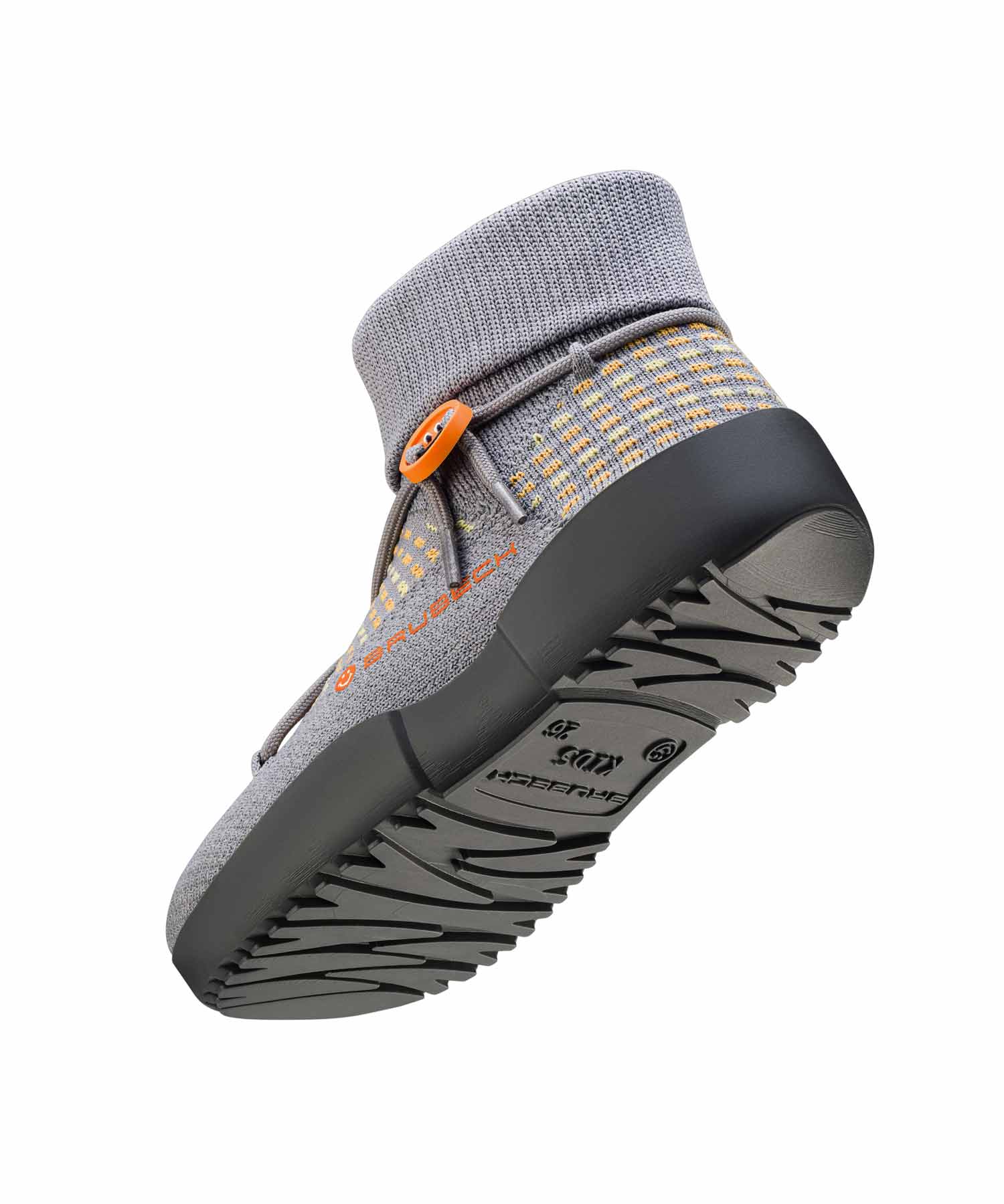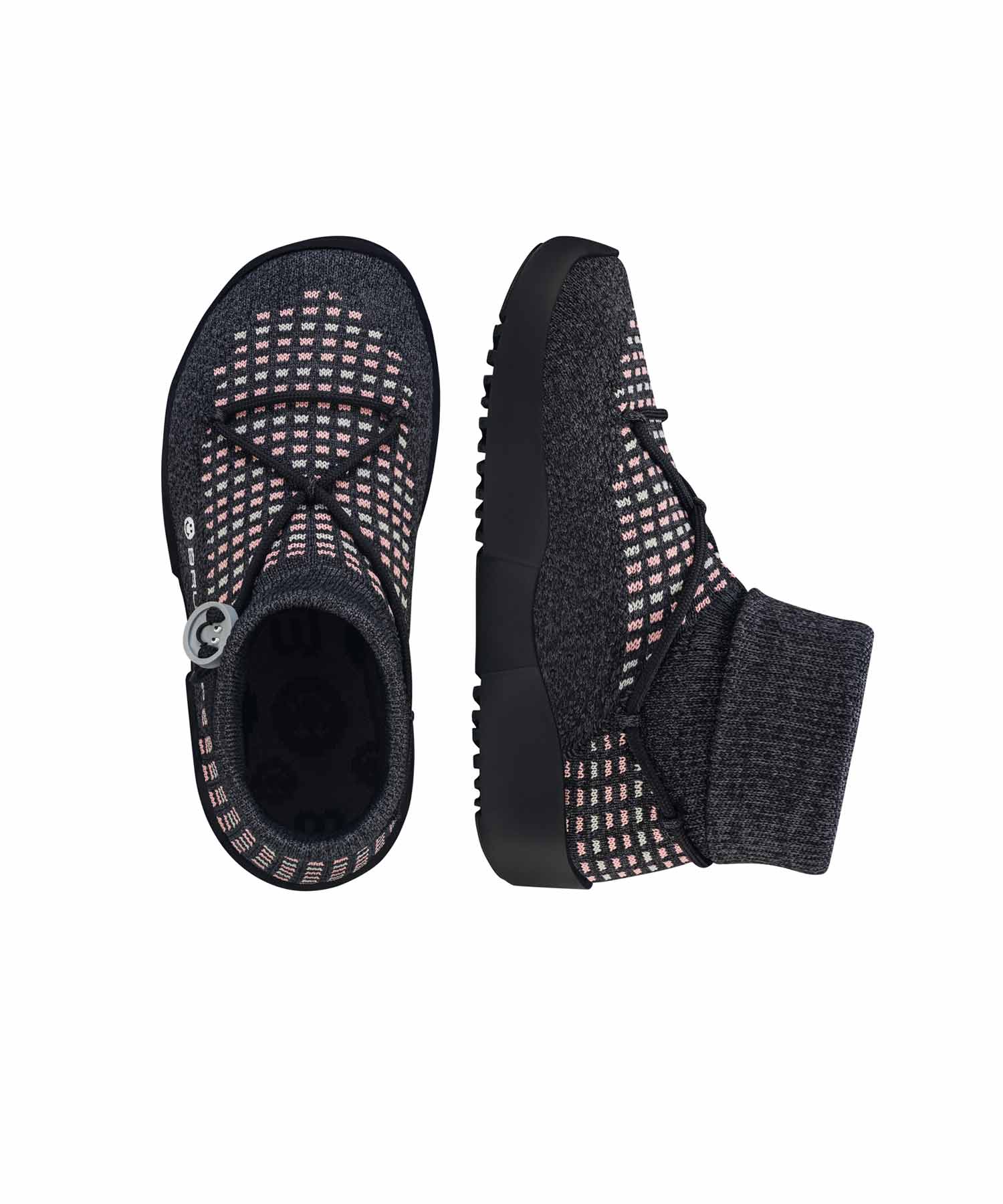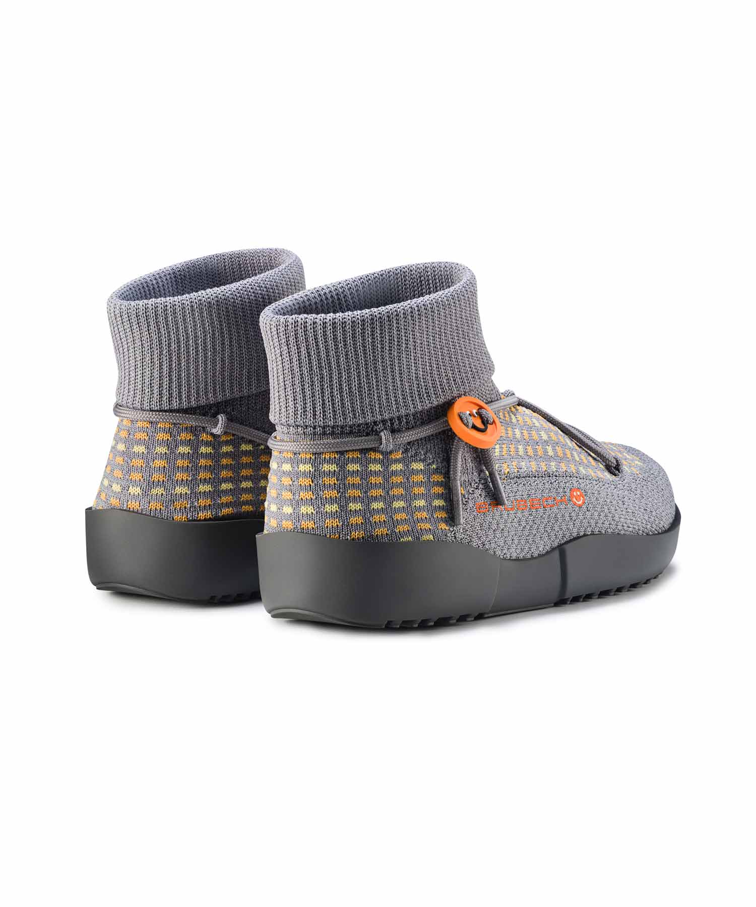 Dziecięce buty przejściowe WARM MERINO KIDS zostały wykonane z elastycznej, oddychającej dzianiny, która doskonale dopasowuje się do małej stopy i zapewnia odpowiednią cyrkulację powietrza. Kluczowym elementem jest tu wełna merino – obecna zarówno w miękkiej cholewce, jak i w komfortowej, wbudowanej wkładce. Ten naturalny surowiec dba o prawidłową termoregulację, utrzymuje ciepło w chłodniejsze dni, a jednocześnie skutecznie odprowadza wilgoć, gdy temperatura rośnie. Wyższa, wywijana cholewka przyjemnie otula nogę i chroni ją przed podmuchami wiatru, tworząc lekką, funkcjonalną konstrukcję idealną na zmienną, przejściową pogodę.