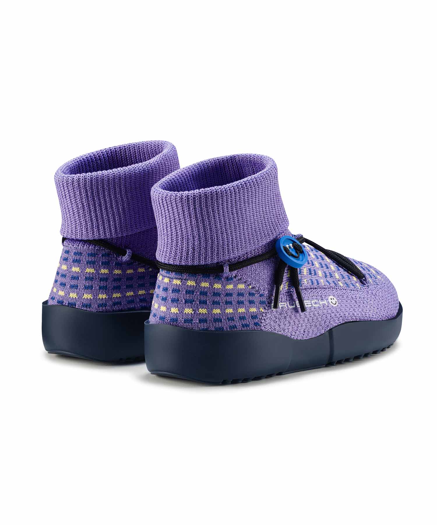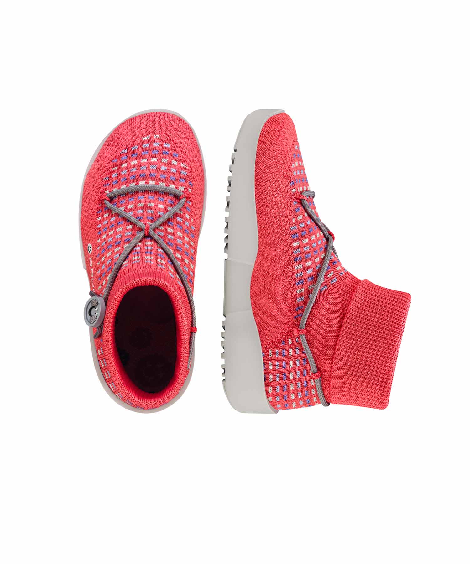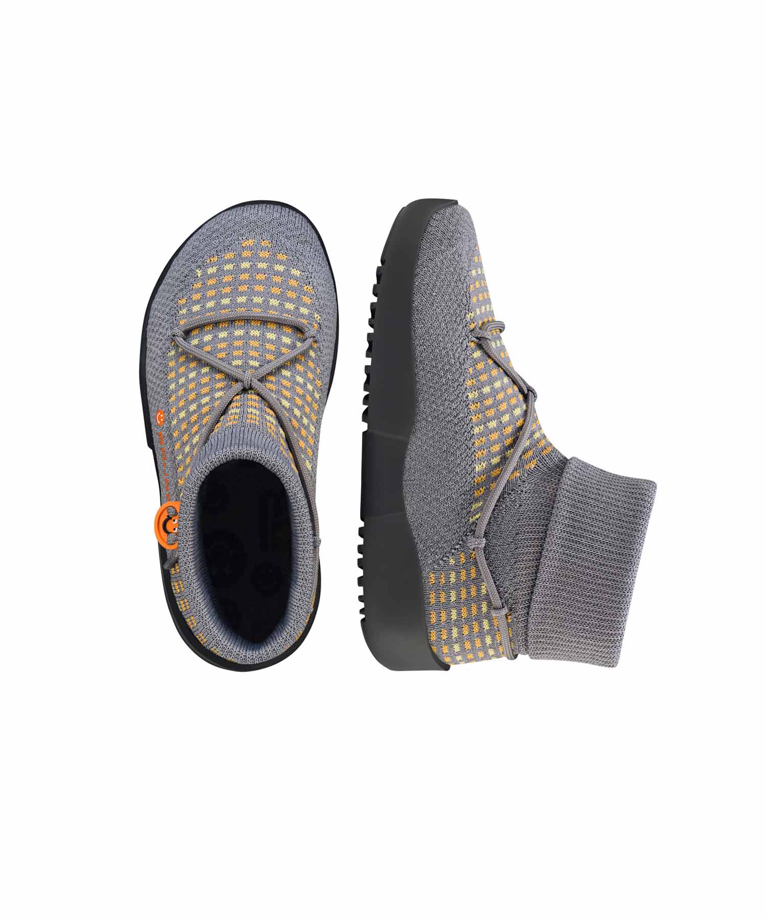 Dziecięce buty przejściowe WARM MERINO KIDS zostały wykonane z elastycznej, oddychającej dzianiny, która doskonale dopasowuje się do małej stopy i zapewnia odpowiednią cyrkulację powietrza. Kluczowym elementem jest tu wełna merino – obecna zarówno w miękkiej cholewce, jak i w komfortowej, wbudowanej wkładce. Ten naturalny surowiec dba o prawidłową termoregulację, utrzymuje ciepło w chłodniejsze dni, a jednocześnie skutecznie odprowadza wilgoć, gdy temperatura rośnie. Wyższa, wywijana cholewka przyjemnie otula nogę i chroni ją przed podmuchami wiatru, tworząc lekką, funkcjonalną konstrukcję idealną na zmienną, przejściową pogodę.