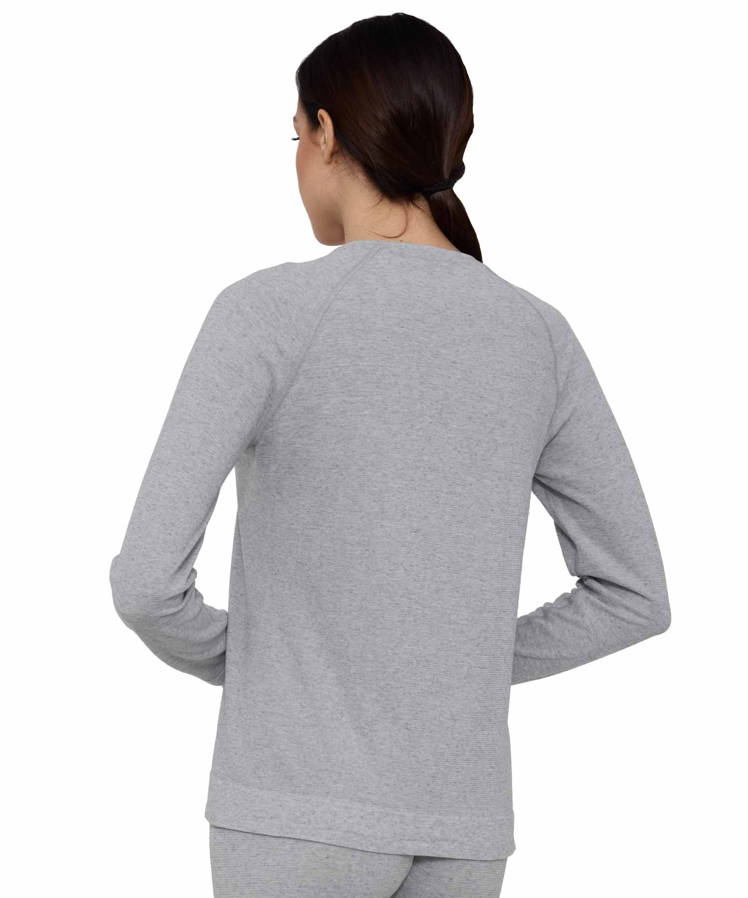 Ten longsleeve do spania COMFORT NIGHT został wykonany z wyjątkowej dzianiny łączącej naturalne włókna lnu z nowoczesnymi mikrowłóknami. Takie zestawienie włókien zapewnia idealny balans między miękkością a swobodnym przepływem powietrza, pozwalając skórze oddychać przez całą noc. Len w naturalny sposób wspiera utrzymanie optymalnej temperatury ciała i świeżość dzianiny, a bezszwowa konstrukcja oraz elastyczna struktura gwarantują pełną swobodę ruchów i doskonałe dopasowanie do sylwetki podczas snu.