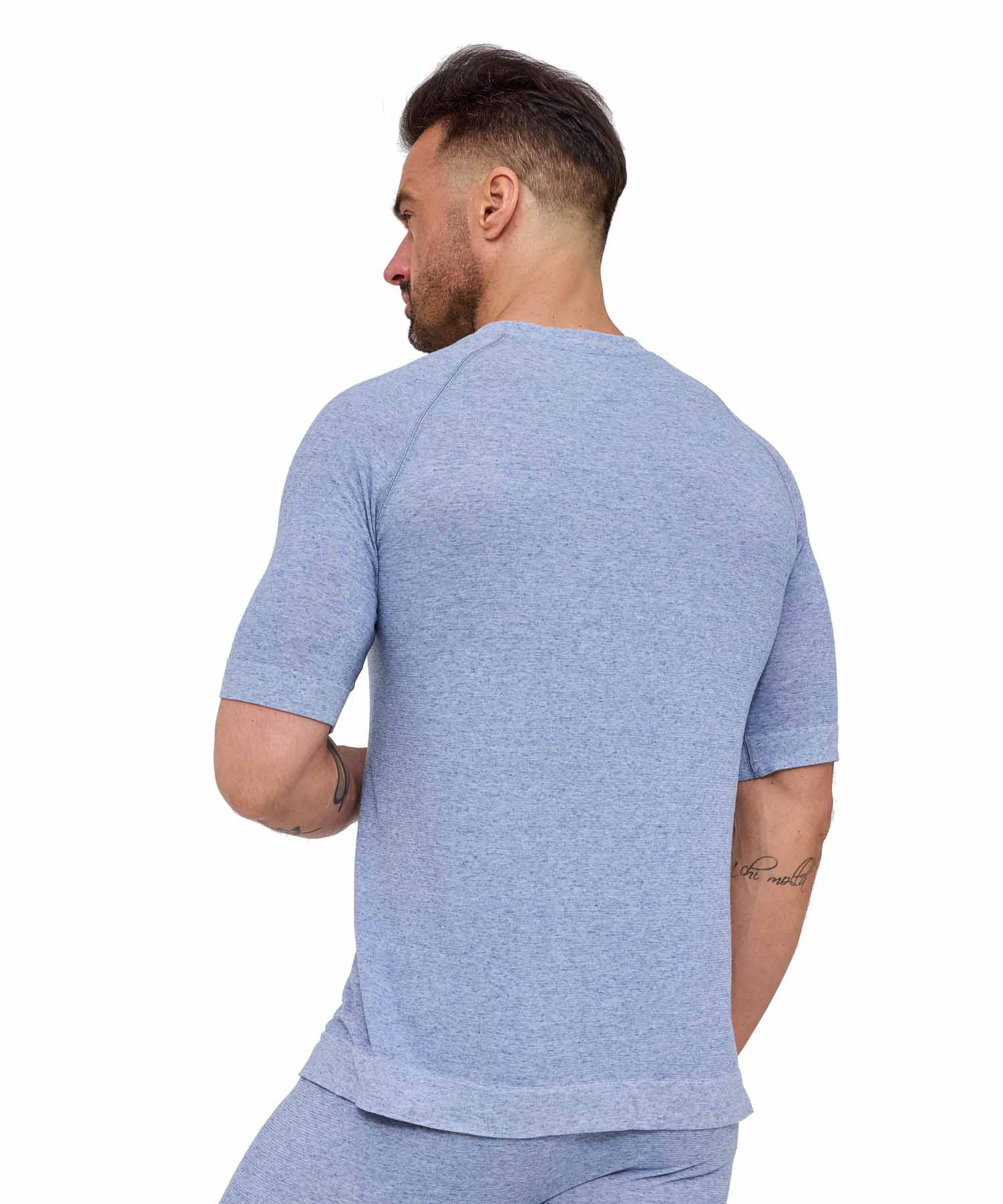 Koszulka z krótkim rękawem COMFORT NIGHT sprawdzi się zarówno jako lekka piżama męska, jak i komfortowa warstwa bazowa w cieplejsze dni. Elastyczny, bezszwowy krój idealnie dopasowuje się do ciała, nie krępuje ruchów i nie podrażnia skóry. To idealny wybór dla mężczyzn, którzy oczekują od odzieży nocnej nie tylko wygody, ale też nowoczesnej funkcjonalności.